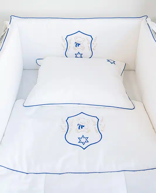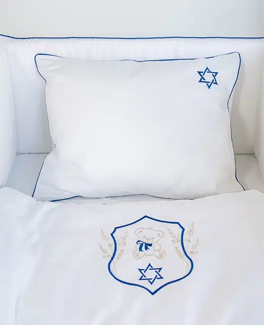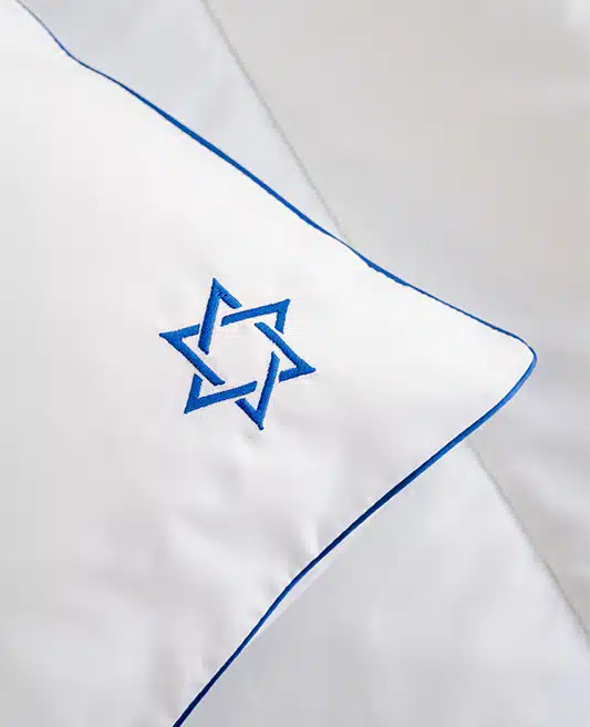 This petite pillowcase, an integral part of our bedding collection, adds an extra touch of elegance to your sleeping sanctuary. The fine embroidery of the Star of David pays homage to its cultural significance, creating a visual representation of faith, unity, and protection.