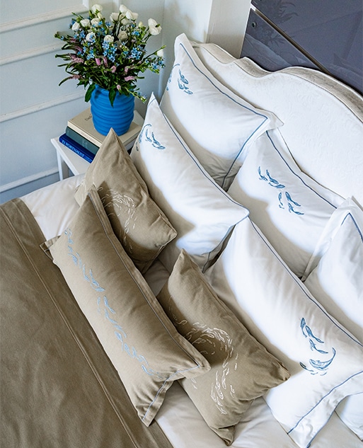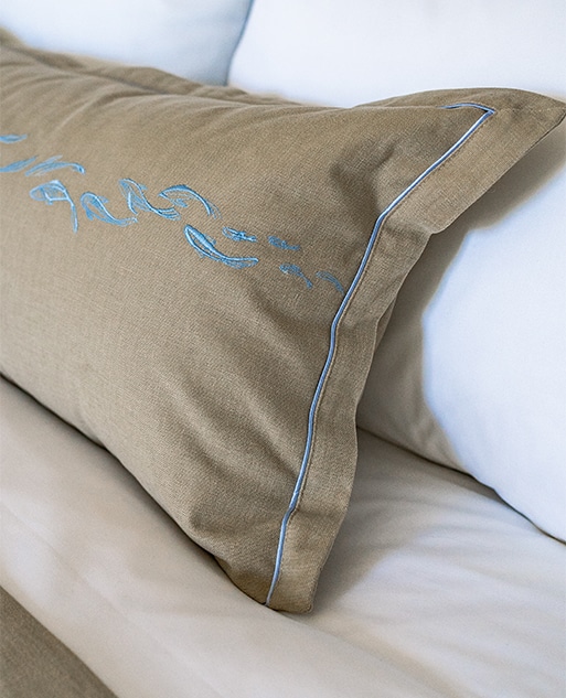 This pillow was created to work beautifully on its own, but truly comes alive when styled alongside The Fish Embroidery Pillow, allowing the two pieces to echo one another through color, texture, and form.
