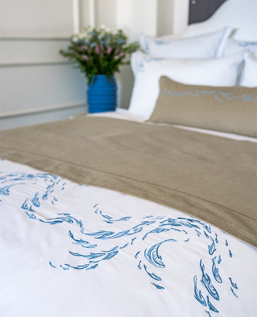 Immerse your bedroom in the calm rhythm of the sea with our Blue Fish Embroidered Duvet Cover from the Ocean Flow Collection.