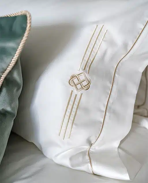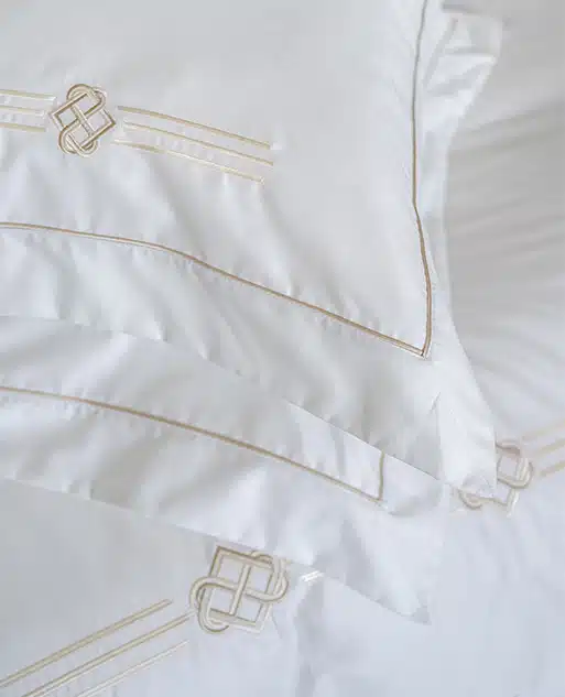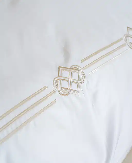 The Champagne Line Embroidery Set is a study in understated elegance.