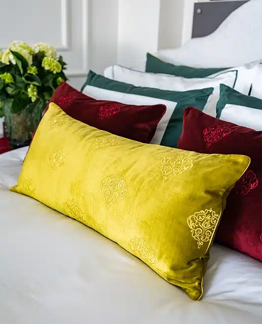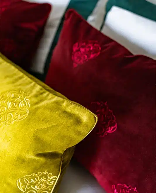 This burgundy velvet cushion refers to the house’s passion for elegant-inspired prints. This home accessory is crafted from luxurious velvet and trimmed with gentle burgundy braided. Position it on a bed to bring royalty to your bedroom.