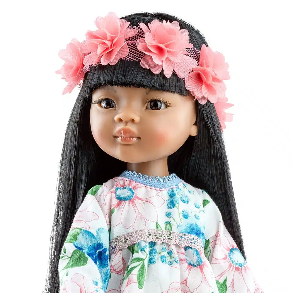 Meily is a 32 cm vinyl doll. This exotic tanned beauty is the newest in our collection but she is sure to be one of our favorites! Her little bear accompanies her on all adventures!