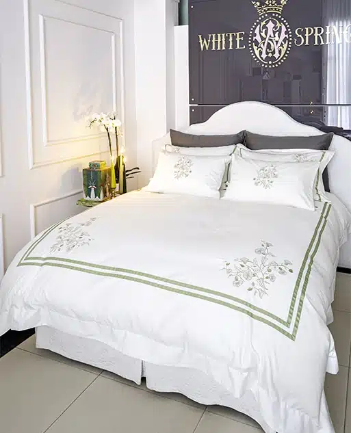 The “Green Garden” duvet cover is a good choice. Our sheet set is made out of soft Egyptian cotton sateen. If you would like to get the most out of this set we recommend you to add some more matching pillows or decorative pieces. This set is unisex and available in any size by order.