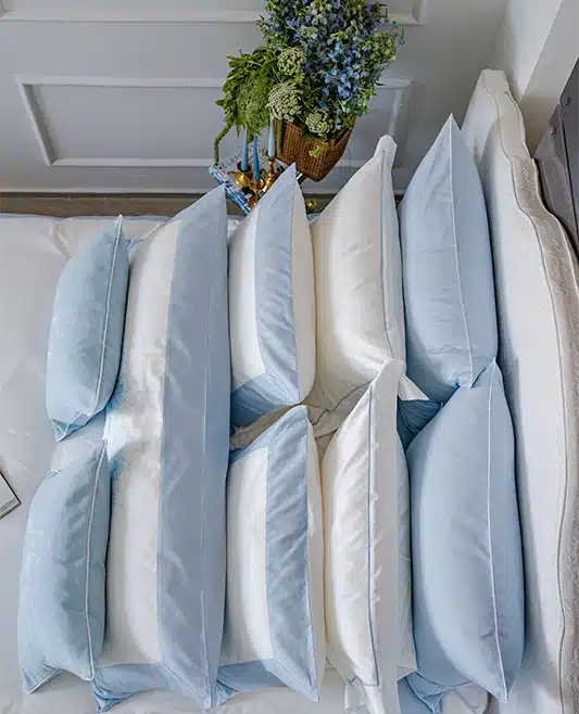 The light blue tone adds a calm, airy feel, while the clean frame detail defines the shape and creates a balanced, composed look.