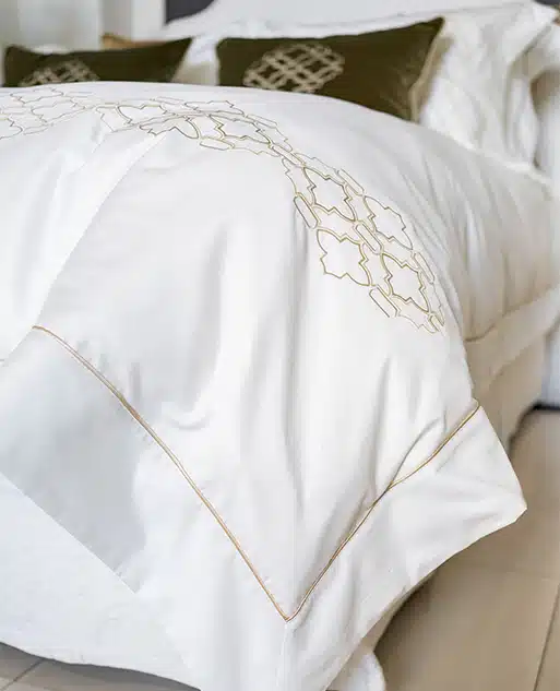 The architectural-inspired embroidery adds a sense of grandeur and exclusivity, making this bedding set a true statement piece. Combining breathability, durability, and ultimate comfort, it transforms your bedroom into an oasis of luxury.