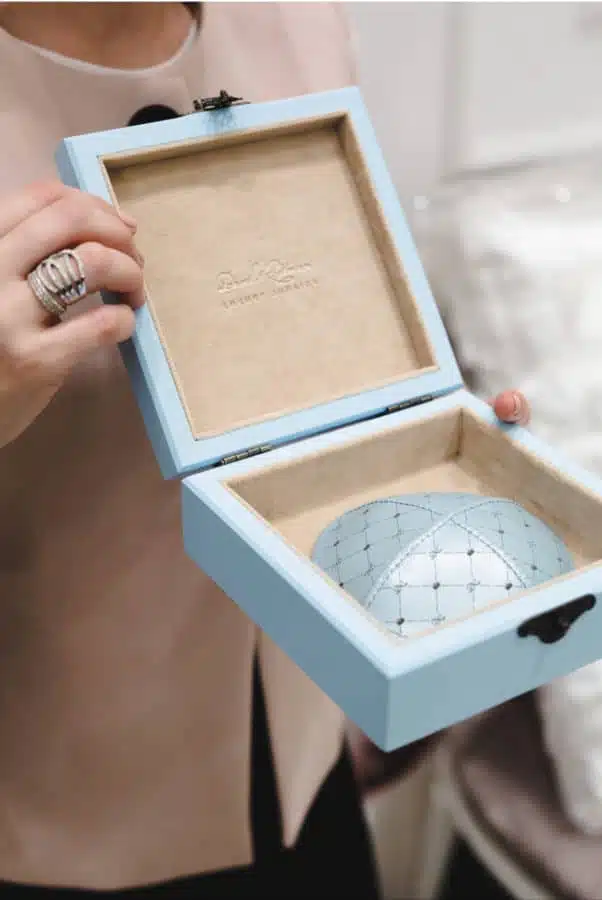 Wearing a ‘kippah’ or ‘kippot’ which is a type of skullcap, is a long-established and time-honored Jewish tradition. White Spring is a leading supplier of luxury kippah that are skillfully woven by dexterous artisans and handicraftsmen. Our Kippah is stitched from 100% Italian leather, and ideal for everyday use and also for wearing during Yom Tov and Jewish holidays. It is available in light blue color and is handcrafted or rather hand-knitted skullcaps.
