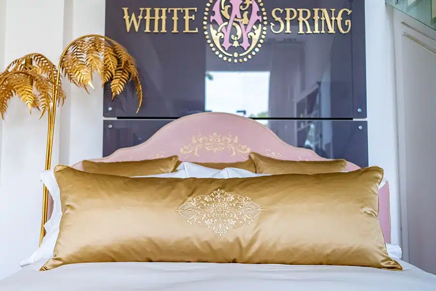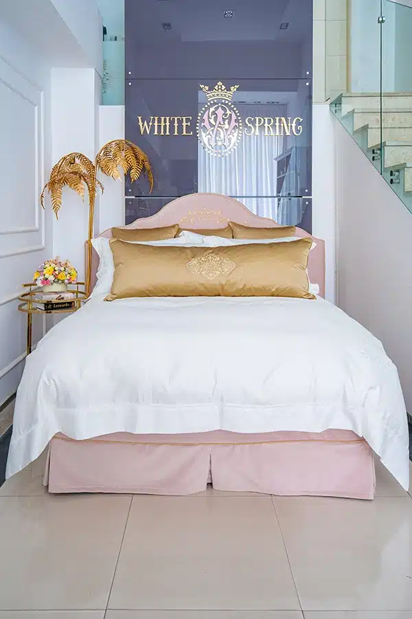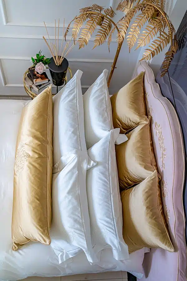 This rectangular cushion will ad a rich touch into your room thanks to it’s powder gold smooth Taffeta Silk. Surrounded by a chic cream trim around.