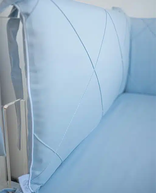 This three-set item includes a luxurious bottom sheet, mini embroidered duvet and a Crib bumper pad with a delicate embroidery detail.  The ultimate gift for the new baby born.
