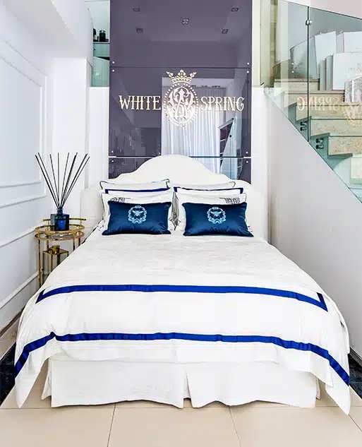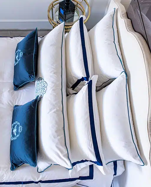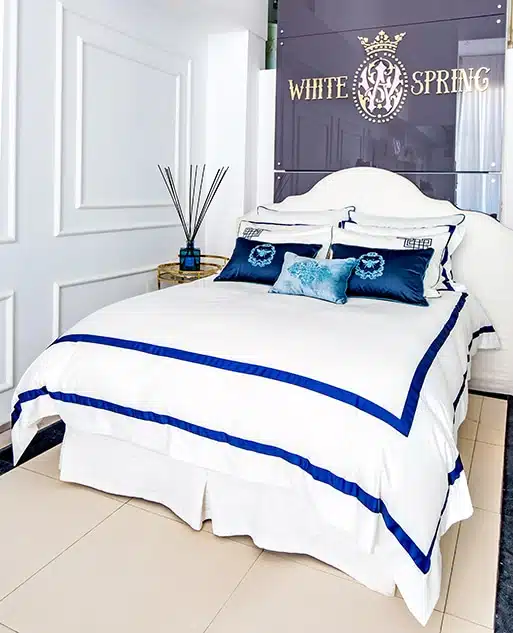 Every elegant bedroom requires at least one “Bold Finished” Bedding set. This blue royal double borders,  finished with sleek simple stitches and strikingly contrast the pure white cotton sateen. making this set timeless but yet modern and unique.