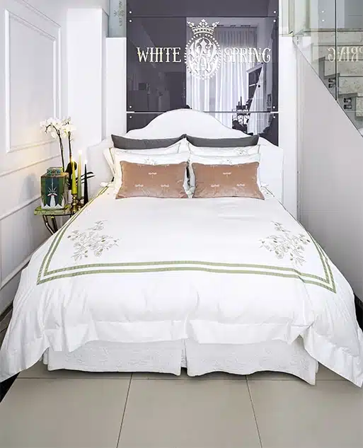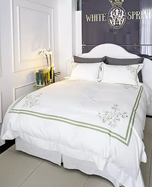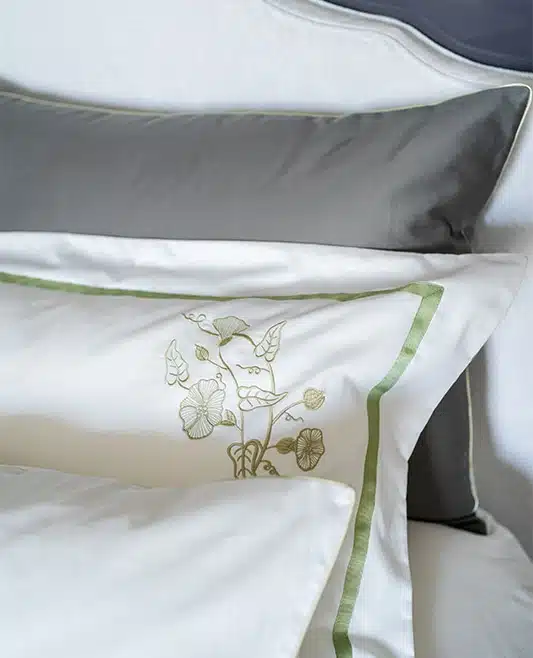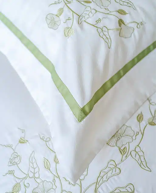The “Green Garden” bedding set is a good choice. Our sheet set is made out of soft Egyptian cotton sateen with  that complements every sophisticated interior. If you would like to get the most out of this set we recommend you to add some more matching pillows or decorative pieces. This set is unisex and available in any size or color by order.