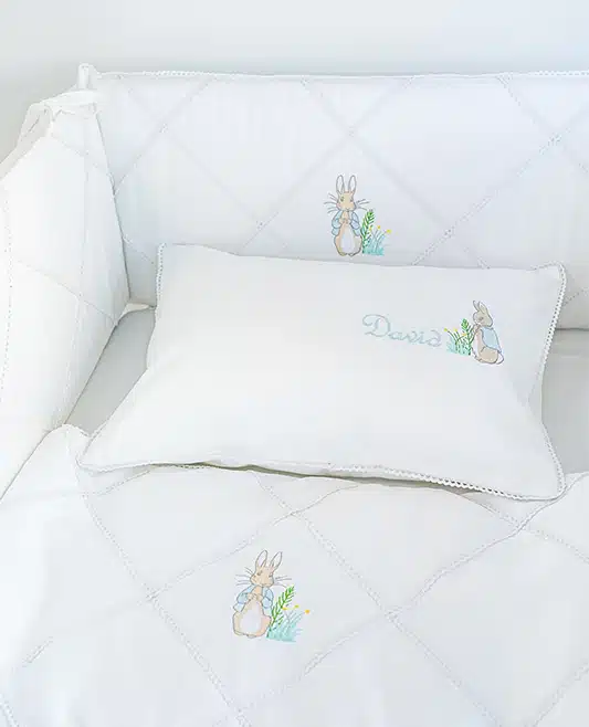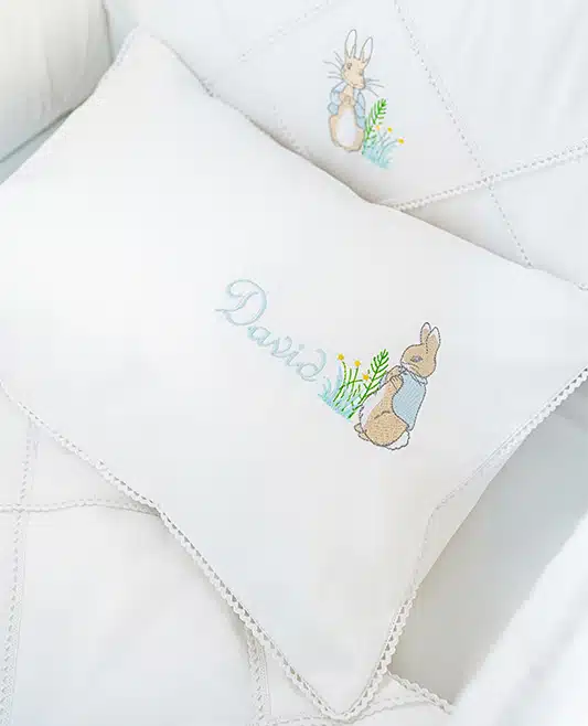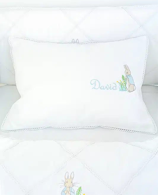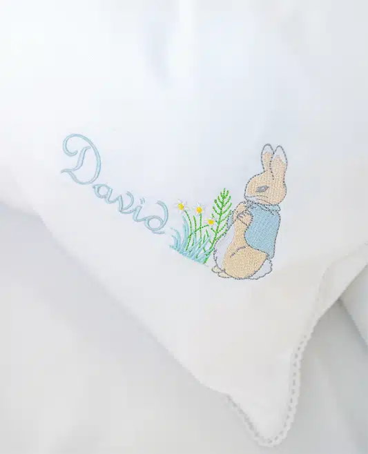 Create a charming and elegant touch in your baby’s nursery with our Personalized Peter Rabbit Baby Pillowcase. Crafted from 100% cotton sateen with a 500-thread count, this luxuriously soft and breathable pillowcase ensures comfort while adding a delicate, timeless aesthetic.