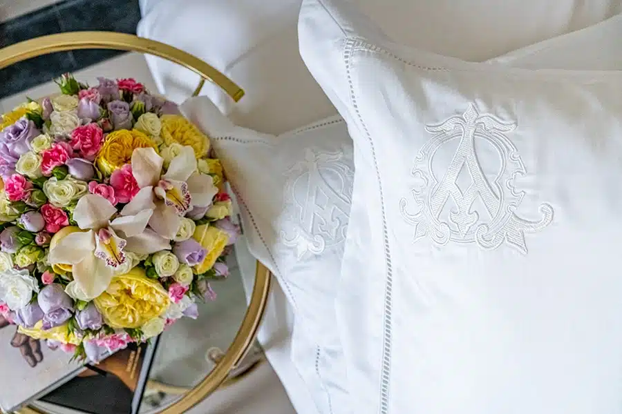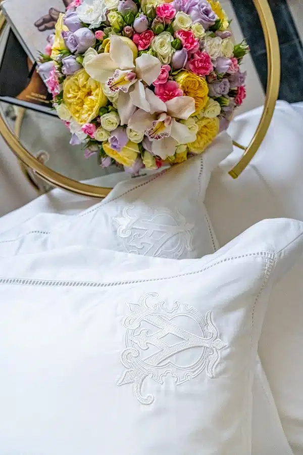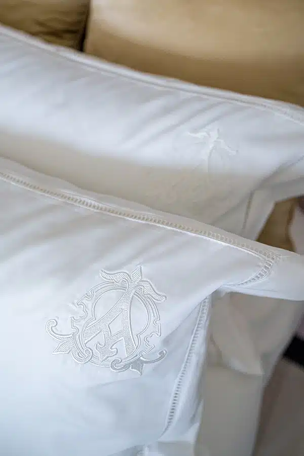 You can purchase a completely white pillow cases or add your monogram in white tones. Please, write your two letters at the end of the order and we will send you an example for permission.
