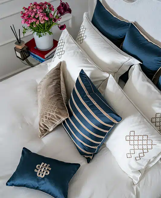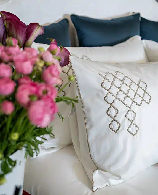 These pillowcases are specially designed to offer a smooth, comforting embrace, ensuring a luxurious sleep experience night after night. The delicate bronze accent provides a tasteful contrast to the pristine white cotton, creating an aesthetic that is both sophisticated and understated.