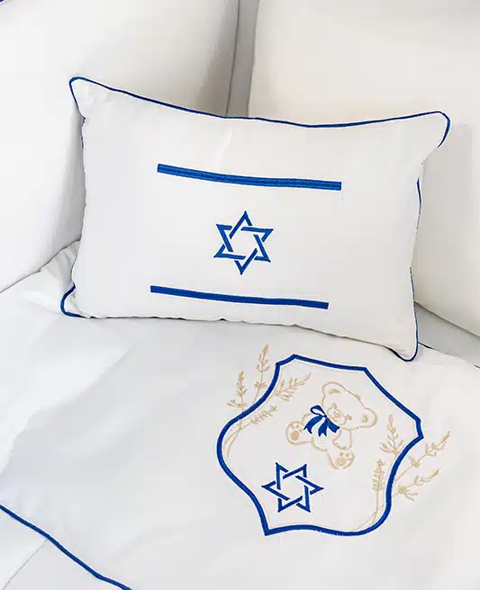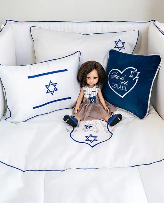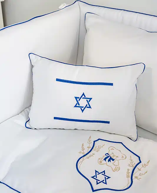 Elevate your nursery with our specially designed small pillowcase, perfect for your baby’s crib and adorned with an intricately embroidered flag of Israel. This petite yet significant addition to our collection encapsulates the essence of the Israeli spirit, bringing a touch of cultural pride and heritage to your little one’s sleeping space. Crafted with care and attention to detail, this pillowcase not only provides comfort but also serves as a visual celebration of Israel, adding a meaningful and patriotic flair to your baby’s crib.