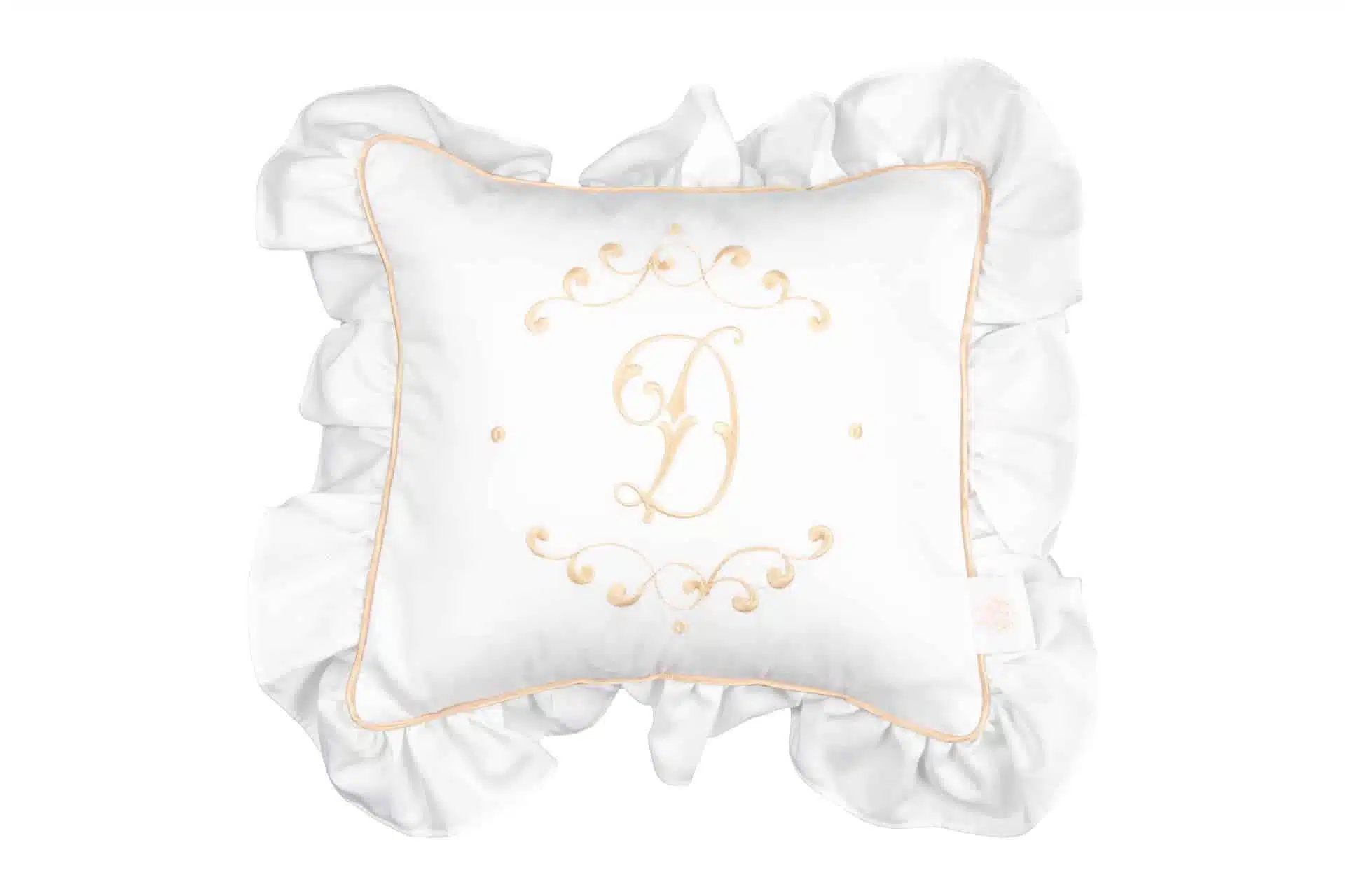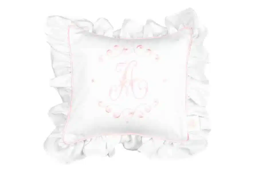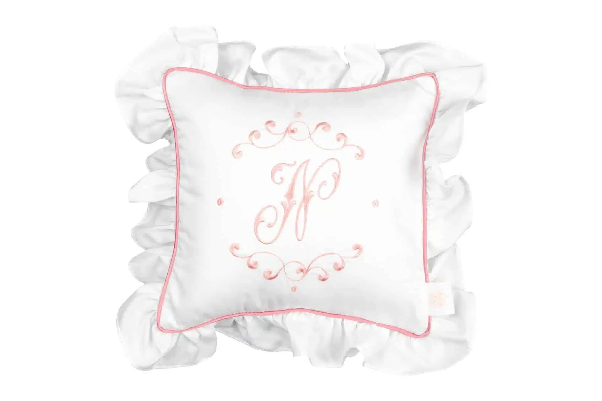 This Timeless Custom-Made “Letter” pillow is crafted from soft Egyptian cotton, features a pink braided trim and romantic ruffles which run around the edge. This decorative piece is suitable for every girls’ room: starting from an early age and up to sweet 16. Pick the letter you are interested at