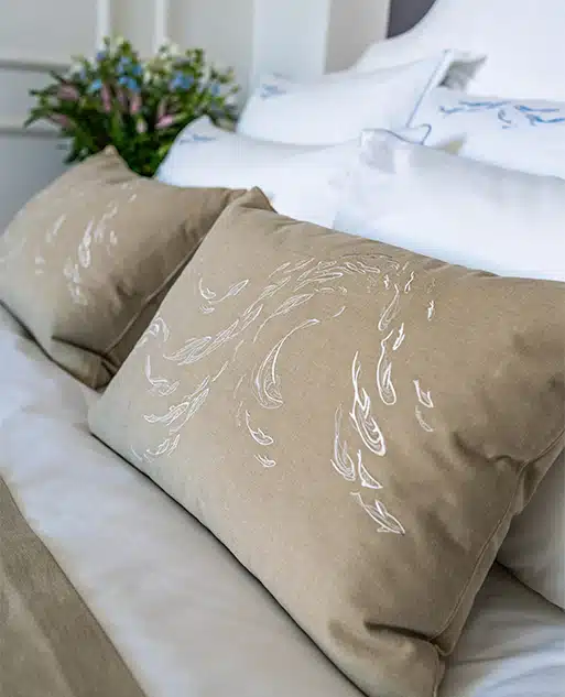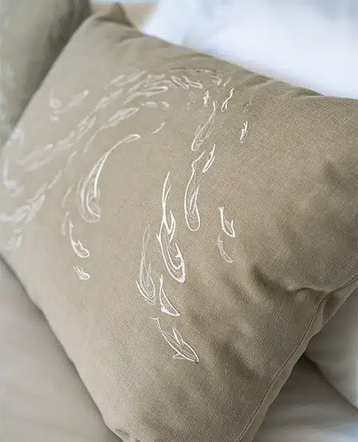 The fish motif feels organic and timeless, blending naturally into serene bedrooms and refined living spaces.